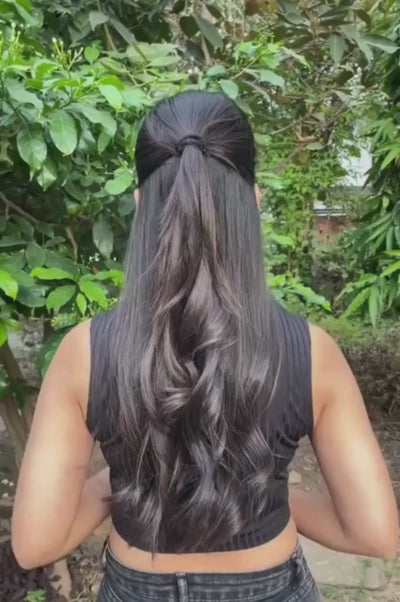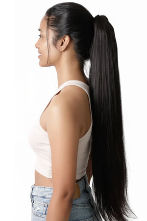 If you want to enhance the length and volume of your ponytail, try our clip-in ponytail extension. It is the fastest and easiest way to get a fuller-looking ponytail. The Seamless blend using invisible making gives the looks that it is coming from the roots of your hair. It is attached on a clutcher giving you a very chic and elegant look. This particular hair extension is attached with a clutcher which makes it very easy to wear. It comes with 23 inches or 58 cm hair length.