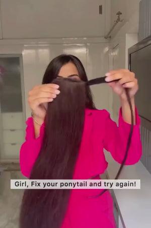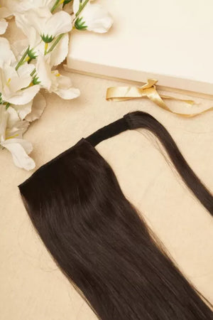 Tie your hair into a tight pony at the desired height you’d like your pony to sit. Attach the hairpiece by gripping it under your bobble with the built-in comb; this can then be securely fitted by wrapping the Velcro and hair around your pony to ensure a seamless application. To finish, we recommend using hair-grips to further secure the positioning of the ponytail on your head.