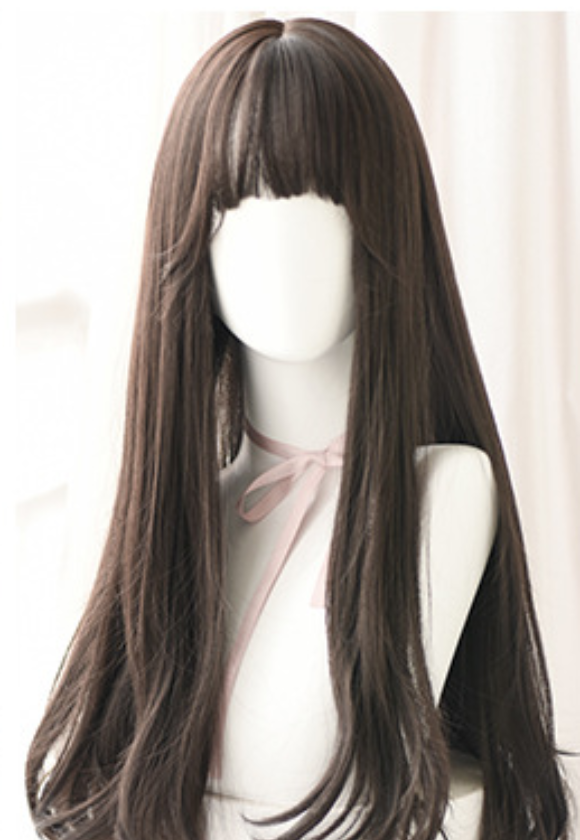 WIG HAIRSTYLE: BURGUNDY BROWN LONG STRAIGHT WITH WAVY ENDS