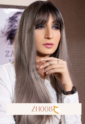 GRAY BLACK OMBRE V CUTTING STRAIGHT BANGS WIG is best for all ages and all face shapes. Our Wigs are made of the finest quality Fiber and Halal to use. Better than Human Hair Wigs. These videos are 100% Original and shot at Zaras Hair Studio to check the Wig Style, Color, Length, and Volume.